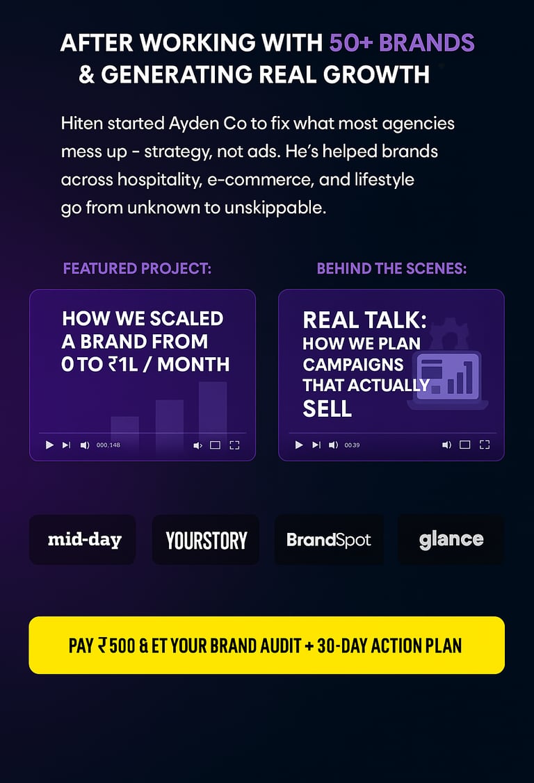 You’ll get a short form to fill in your brand details and a link to book your live call with our strategist. After that, we start building your custom 30-day plan.